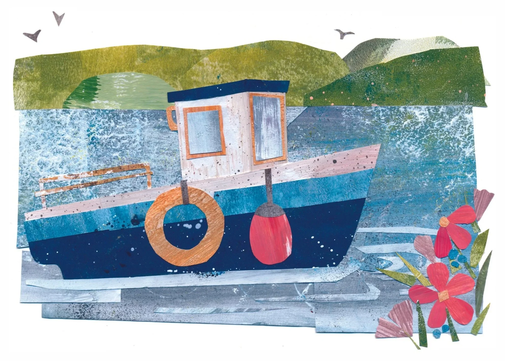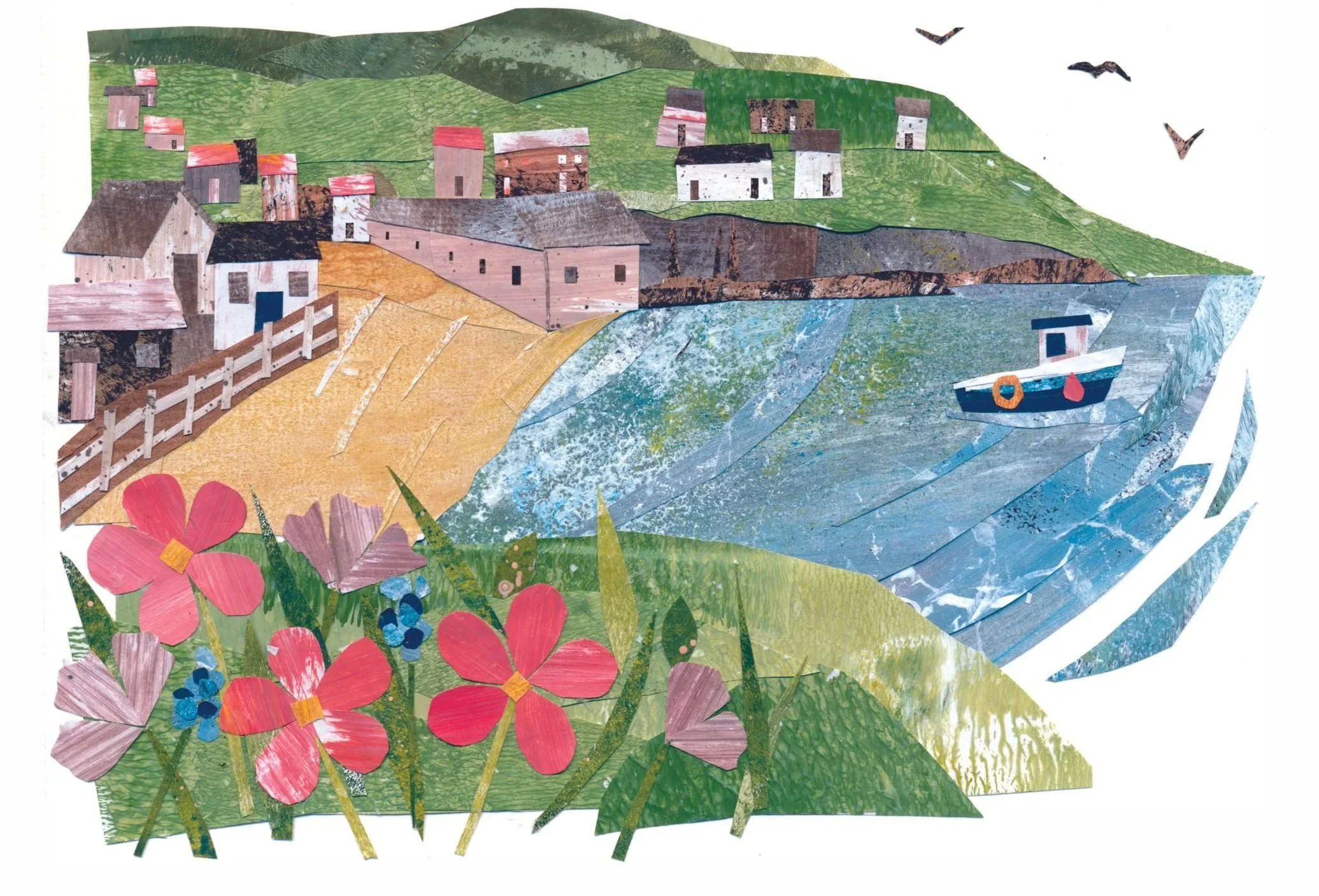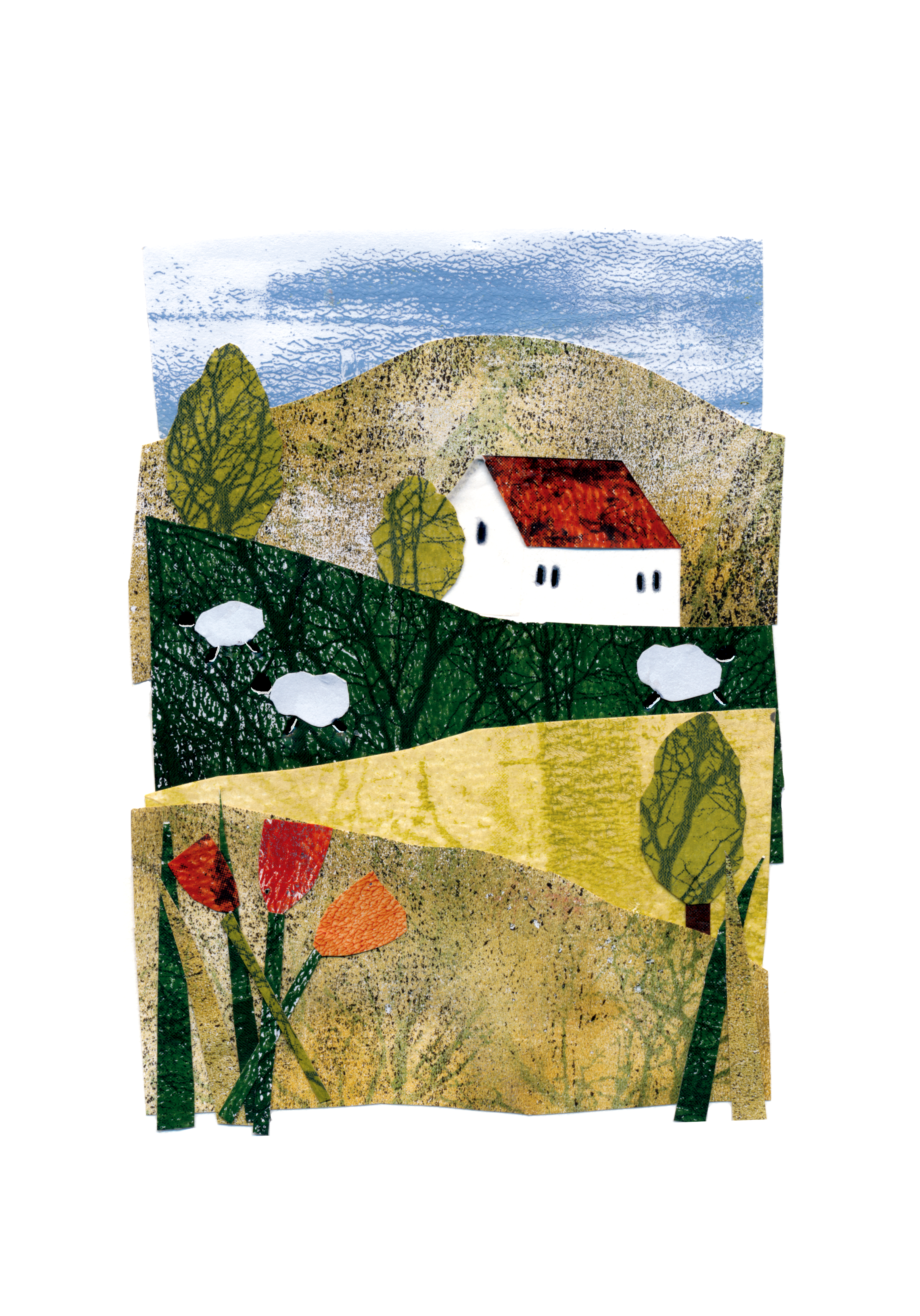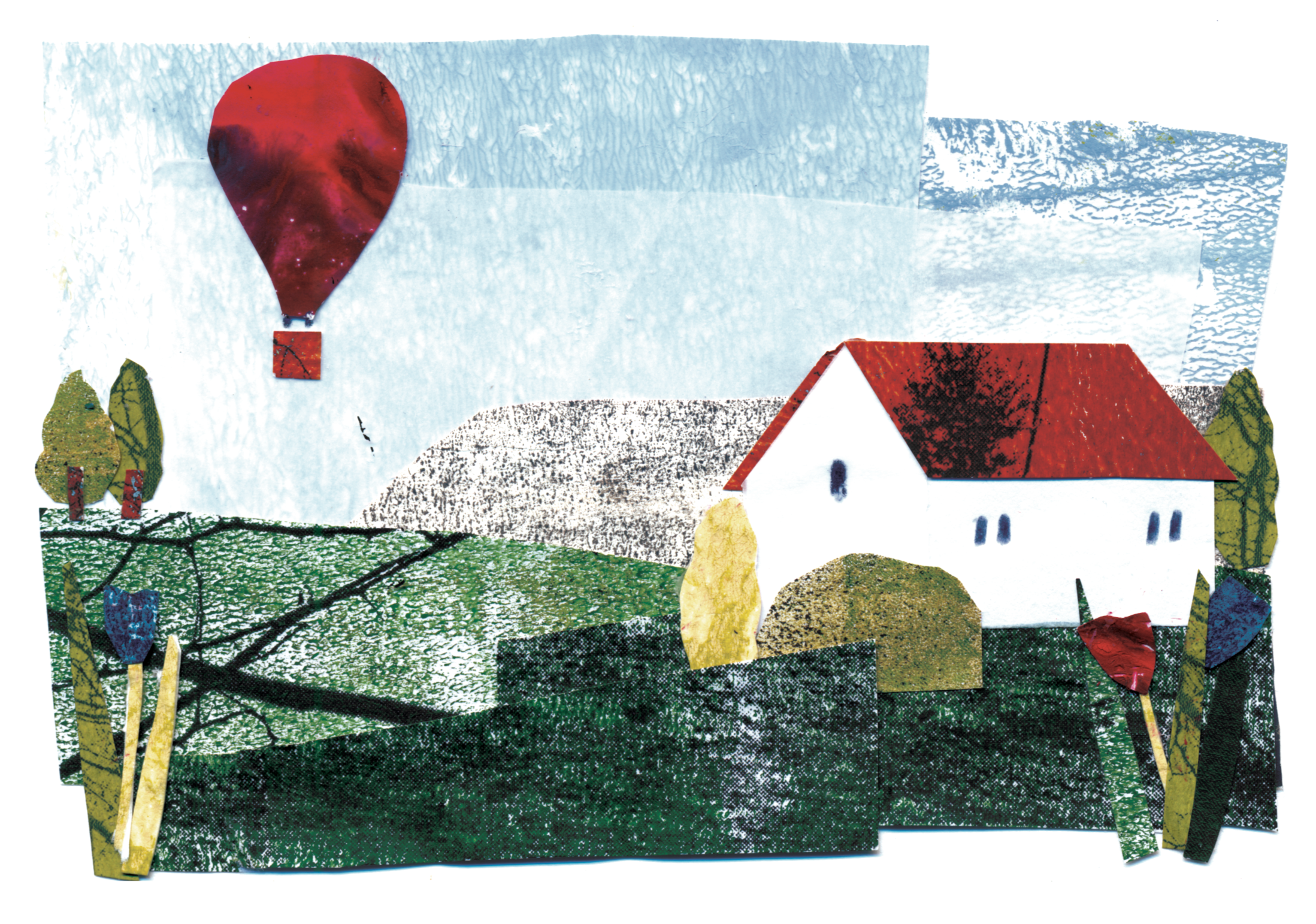 Artwork created with hand-painted collage papers