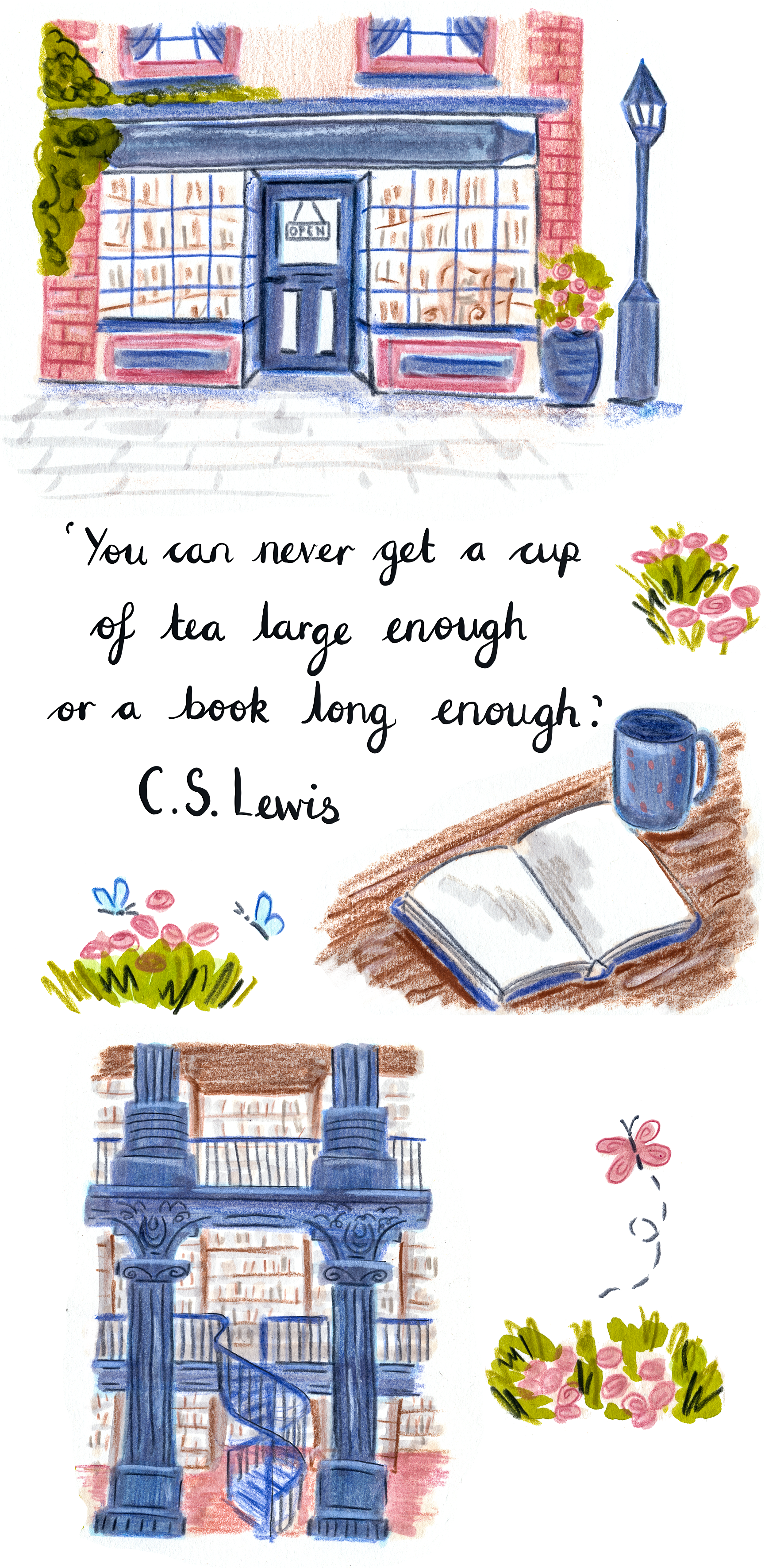 Artwork created in water based marker, coloured pencil, pastel, Procreate and Adobe Photoshop